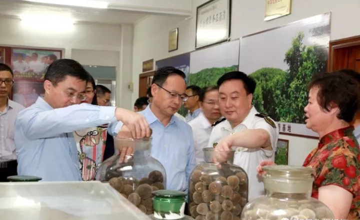 广东检验检疫局施宗伟局长一行在茂名市副市长崔剑、化州市委书记黄永、化州市副市长巫卫国的陪同下,来到了化州化橘红药材发展有限公司调研。公司李锋董事长、余剑军总裁亲自接待并且为前来调研的领导讲解橘星化橘红种植技术、炮制工艺以及文化发展历程。