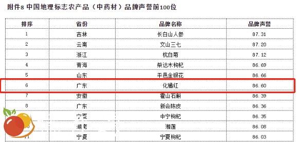 报告显示,化州化橘红入选中国地理标志农产品品牌声誉榜前100位,位列第49位。一同发布的中国地理标注农产品(中药材)品牌声誉榜前100位中,化州化橘红位居第6位。